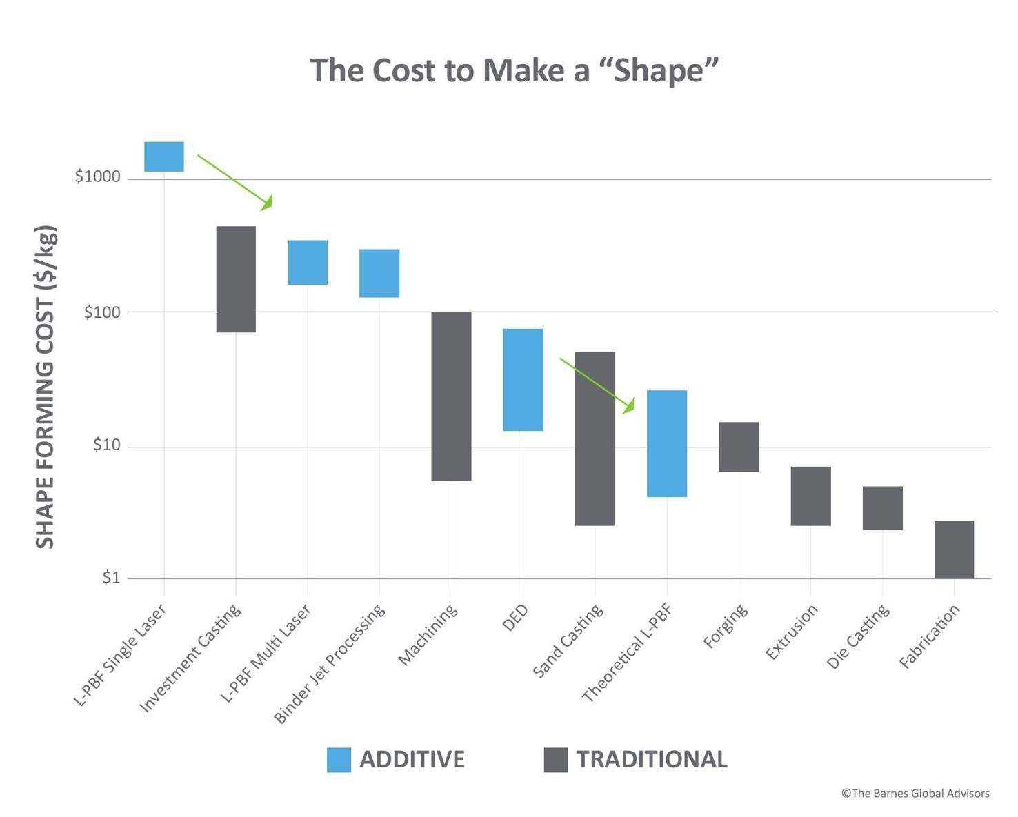 Metal AM economics still start from an uncomfortable position for production engineers. In‑house part cost estimates commonly sit in the $100-plus to $1,000 per kilogram for metal PBF (Figure 1), even before post-processing and qualification. Those numbers can be justified for highly optimized aerospace brackets or patient-specific implants. Still, they are unhelpful when trying to replace a casting sold at $10 to $100 a kilogram.