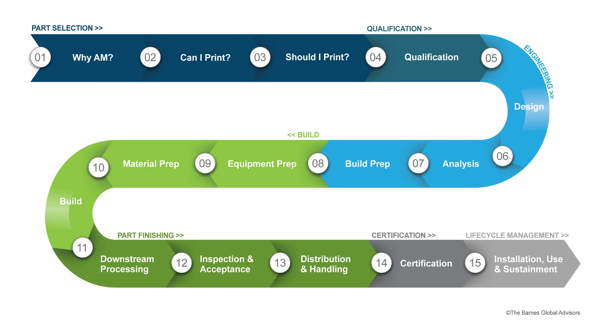 Reshoring also does not happen centrally. Reshoring happens regionally, through manufacturing ecosystems that align industry demand, workforce pipelines, digital infrastructure, and predictable market signals. These ecosystems create the conditions in which additive manufacturing can scale beyond laboratories and pilot facilities. When AM is embedded within a regional network of suppliers, training institutions, and end users, its advantages (i.e., speed, flexibility, and localization) translate into real production capability. The U.S. Congress is looking for this model to bear out through what it is calling the Civil Reserve Manufacturing Network. My team at The Barnes Global Advisors has been developing one version of this model for the past 5 years at Neighborhood 91.